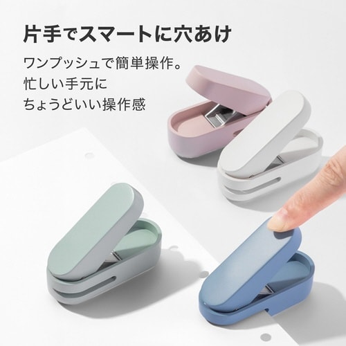 コンパクトな一穴パンチ。一般的なファイルに対応する直径6mmのしっかり穴。10枚まで、一気に穴あけできます。中が見えるダストケース付き |