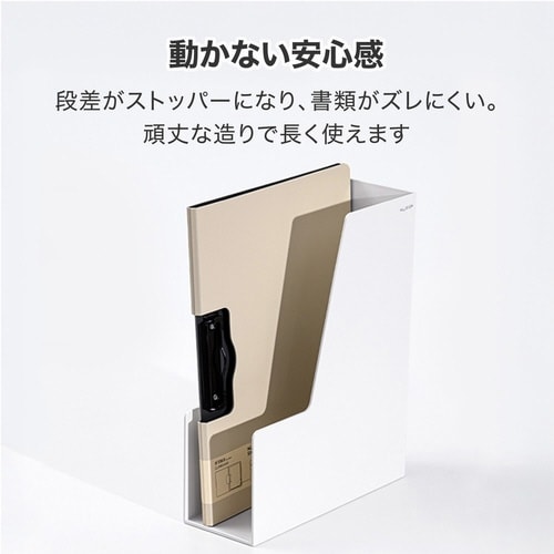 安定感のある収納で、書類も安心のファイルボックス。底面にすべり止め付でズレにくく、本体重量515gのずっしりとした安定感。丸角でやさしいフォルムの安心設計 |