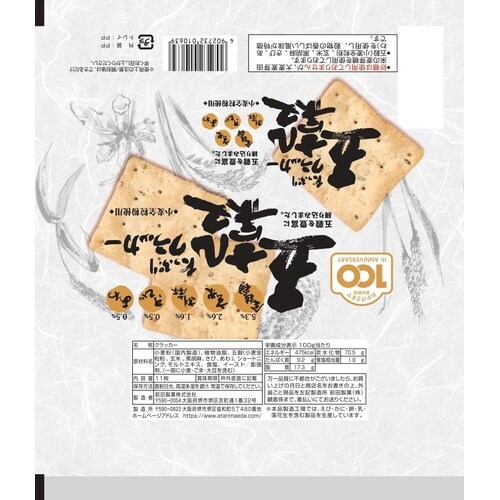 五穀(小麦全粒粉・玄米・黒ごま・きび・あわ)を練り込んだ健康志向なクラッカーです。 |