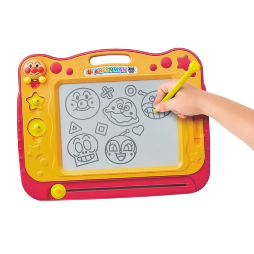 アンパンマンの顔が付いた「三角軸ペン」付属!楽しくお絵かきできる、らくがき教室が新しくなって登場!マグネットでくっきり!描いたり、消したり、繰り返し何度も遊べる。 |