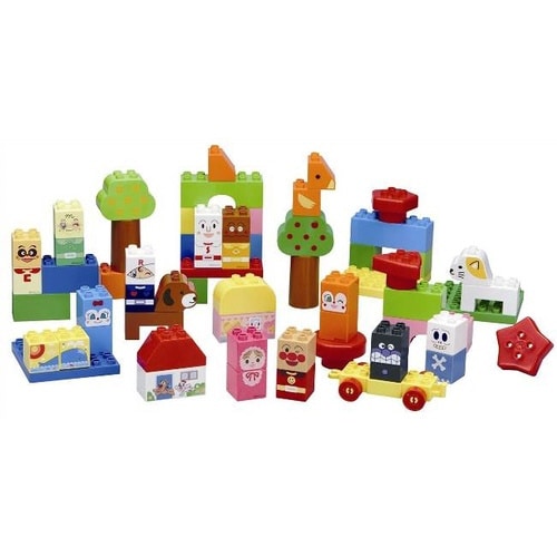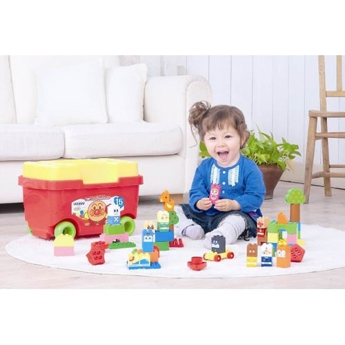 大きなタイヤが付いたワゴン型の収納ケースに入ったボリュームたっぷりのブロックセット!星型や丸型などの色々な形のブロックと蓋を使って形合わせ遊びも楽しめます。人気のキャラクターブロックが11体入り。 |