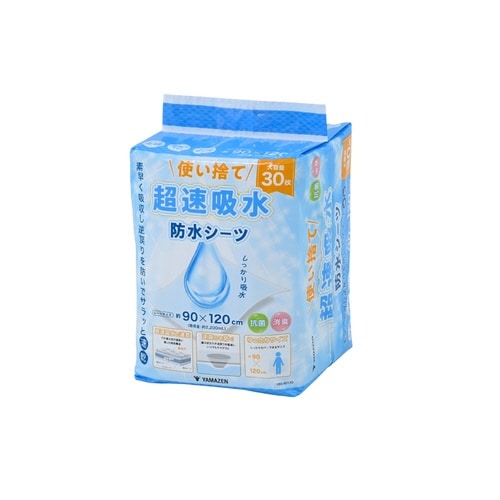 使い捨て超速吸水 防水シーツ 90×120cm 30枚入 抗菌 消臭 吸水量2200ml