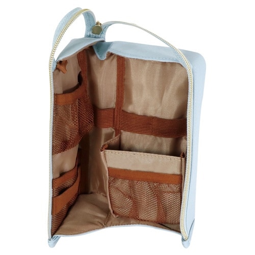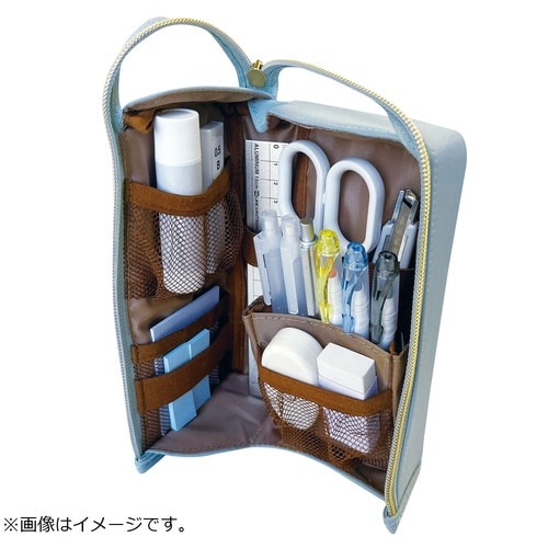 使いたいものがすぐ見つかる!L字にガバッとひらくスタンド型ペンケース。使いたいものがすぐ見つかる多機能な収納部。スタンド収納で筆記具が取り出しやすい。フックにかけたり、持ちはこびしやすい形状。 |