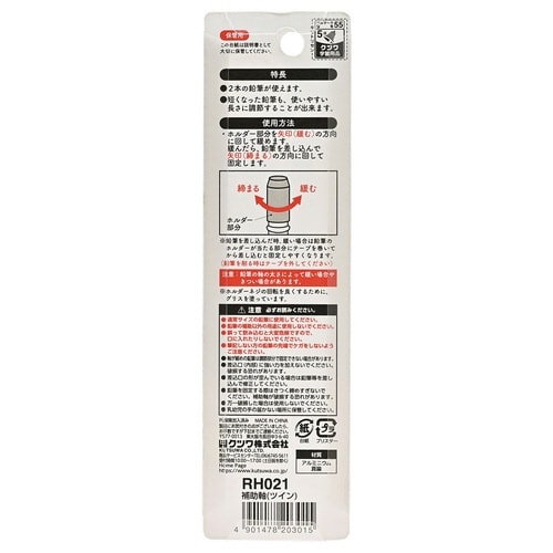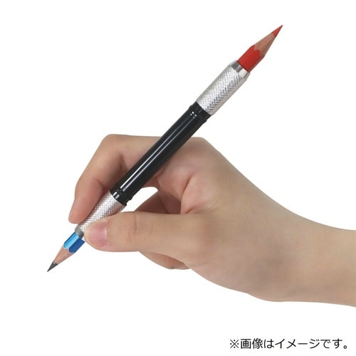 1本で2本の鉛筆を使える補助軸。2本の鉛筆を装着可能。すべり止め加工グリップ。光沢感のあるアルミ製。 |