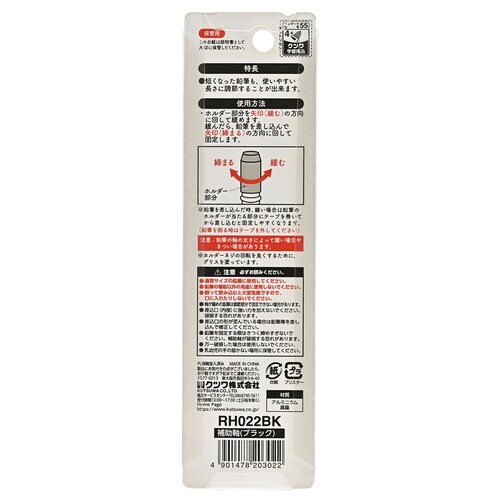 短い鉛筆が持ちやすいアルミ製カラー補助軸。短い鉛筆を装着可能。すべり止め加工グリップ。光沢感のあるアルミ製。 |