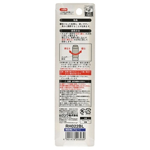 短い鉛筆が持ちやすいアルミ製カラー補助軸。短い鉛筆を装着可能。すべり止め加工グリップ。光沢感のあるアルミ製。 |