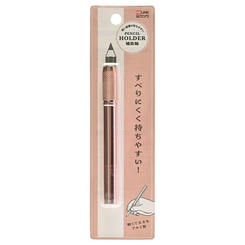 短い鉛筆が持ちやすいアルミ製カラー補助軸。短い鉛筆を装着可能。すべり止め加工グリップ。光沢感のあるアルミ製。 |
