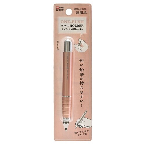 抜き差し簡単ワンプッシュ!ワンプッシュで簡単に鉛筆を着脱。消しゴム付。すべり止め加工。光沢感のあるアルミ製。 |