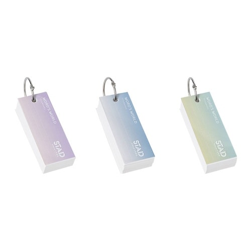 シンプルで使いやすい単語カード。グラデーション3色アソート。中紙111枚。書き込み可能なタイトル欄付。 |