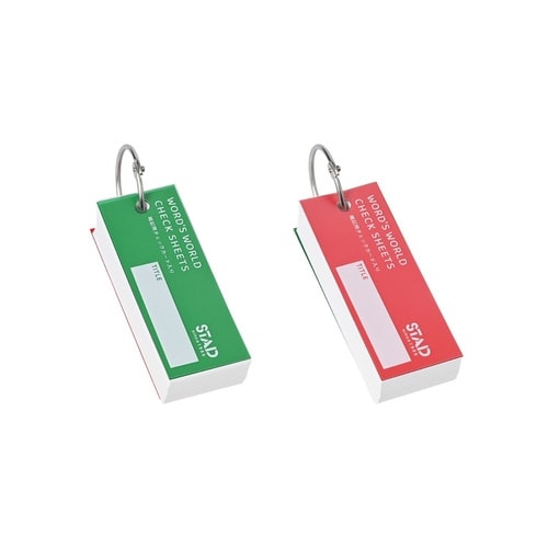 暗記シート付の単語カード。暗記シート2枚付(赤・緑)。中紙111枚。書き込み可能なタイトル欄付。 |