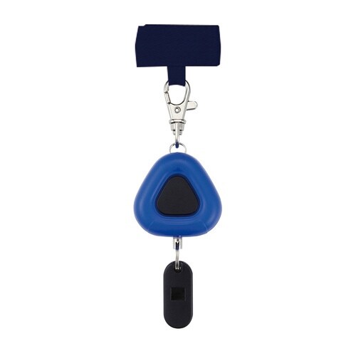 夜道でも光って安全!交通安全ライト付防犯アラーム。3つのLEDで50m離れた暗闇でも見える。連続点滅約80時間/連続点灯約40時間。雨にも強い生活防水。CR2032コイン型リチウム電池2個使用(別売) |