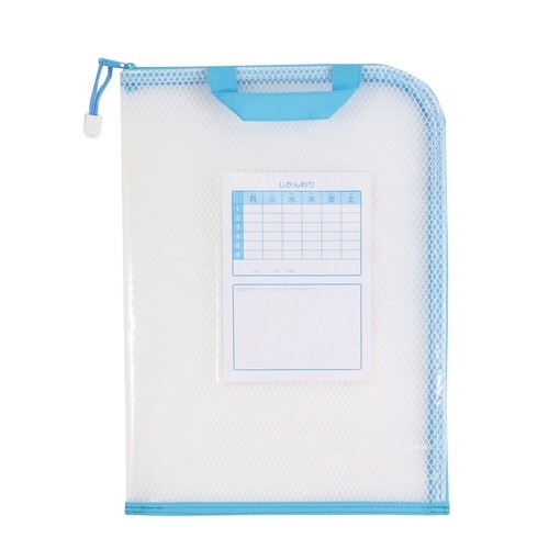 ランドセルに出し入れしやすい!プリントが折れずにキレイに持って帰れる連絡袋。ランドセルから取り出しやすい取っ手付。プリントが折れ曲がりにくい仕切りシート付。丈夫なメッシュ生地。じかんわり付。 |