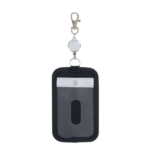 リール付でバッグにつけたまま使いやすい。カード入2室(表面1室+背面1室)。背面ポケットはカードが落ちにくいホック付。暗い道でも安全な反射生地を使用。 |