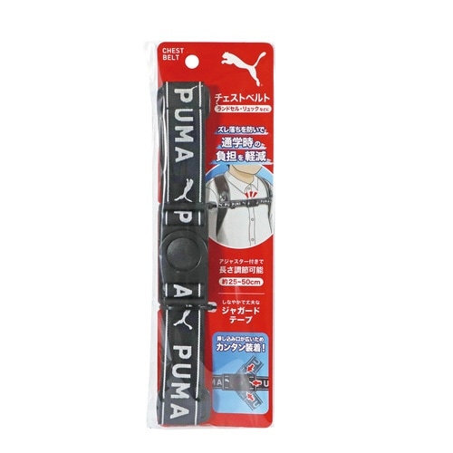 ランドセルやリュックのズレ落ちを防いで通学時の負担を軽減。簡単に装着できる差込口が広いバックル。アジャスター付で約25・50cmに調節可。しなやかで丈夫なジャガードテープを使用。 |