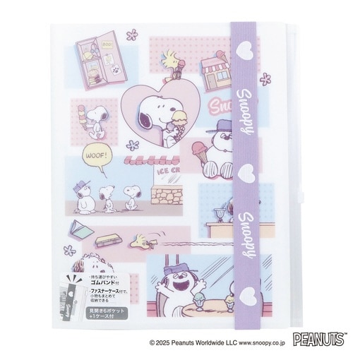 見開き6ポケット付。ファスナーポケット付で、小物もまとめて収納可能。ゴムバンド付。 |