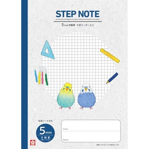 無線綴じなので、大きく開いて書きやすい!いろんな科目で使用できる、方眼罫5ミリ。科目シール付きです。