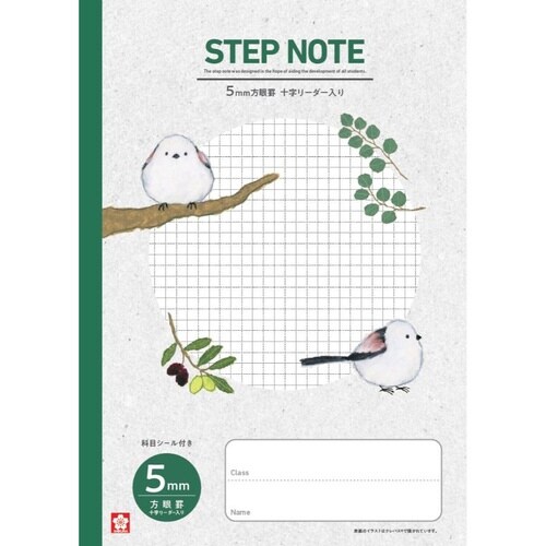 無線綴じなので、大きく開いて書きやすい!いろんな科目で使用できる、方眼罫5ミリ。科目シール付きです。