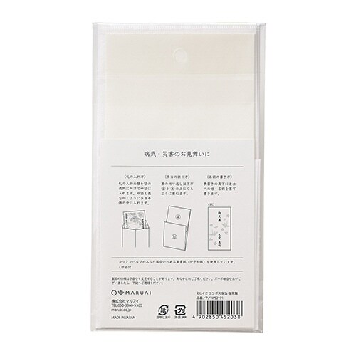 コットンパルプを配合したふっくらと温かみのある奉書紙にエンボス加工で和のモチーフを散りばめた、上品な多当、病気・災害のお見舞いに |