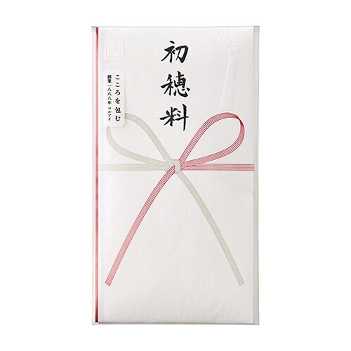 アッシュコンセプト+マルアイのコラボ企画ベーシックな水引デザインとのし部分にのみエンボスを使用することでシンプルかつ高級感のある多当、「初穂料」の文字が印刷 |