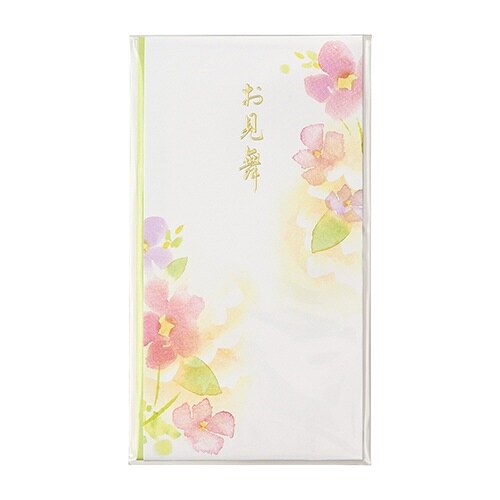 人気の水彩タッチの花柄の多当、「お見舞」の文字が墨色で印刷 |