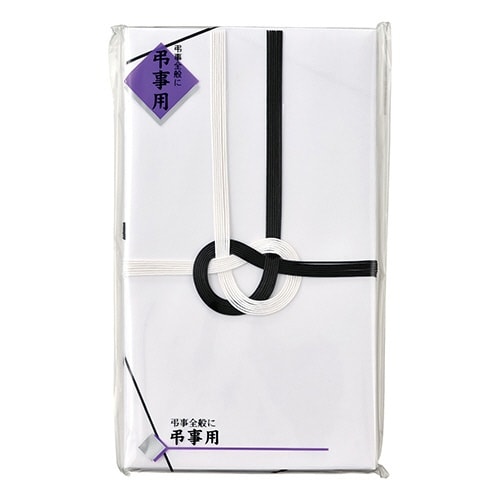 弔事全般の金包みとして最適な金封、黒白7本あわじ結びで斜折タイプは、主に関西地方で使用、蓮葉のないタイプは宗教問わずご利用可能 |