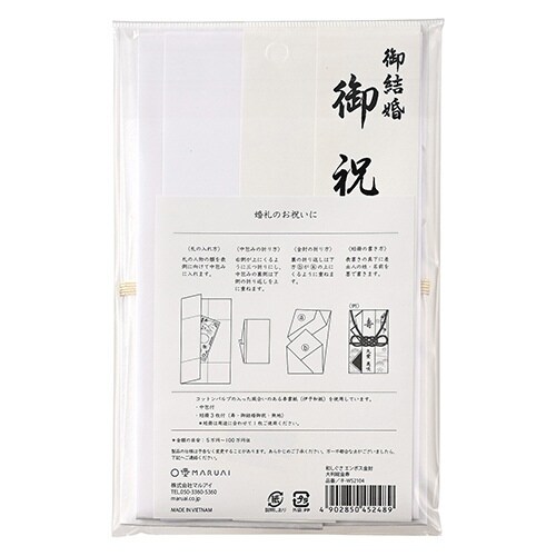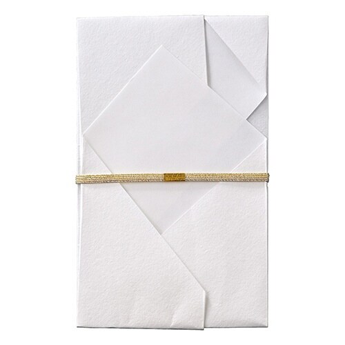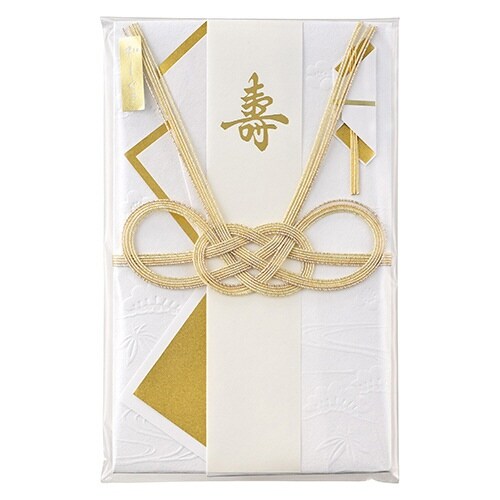 柔らかできめ細やかな手触りの純白奉書紙(伊予和紙)に、エンボス加工を施し、華やかな水引を結んだ祝儀袋、金額の目安:5・100万円(100万円まで入ります) |