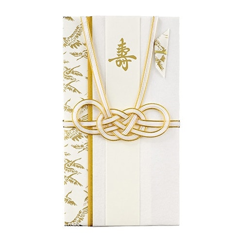 金の鶴が舞う手染めの友禅紙を使った、洗練された華やかな婚礼用金封、末永い二人の幸せを願って贈るのにふさわしい祝儀袋 |