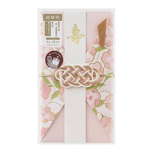 アネモネの花柄をあしらった着物をイメージした形のデザインのご祝儀袋、花言葉:「希望」「待ち望む」、水引を外さずに中袋を楽に出し入れできる「らくタッチ」構造採用きれいに書けるお名前書き方ガイドつき |