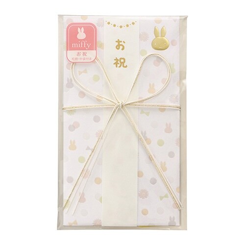 大人かわいいミッフィーの祝儀シリーズ、品のあるやさしい雰囲気に仕上げた金封、出産のお祝いはもちろんのこと七五三や入園・入学など婚礼以外の幅広いお祝い事に使用可能 |
