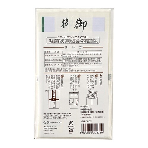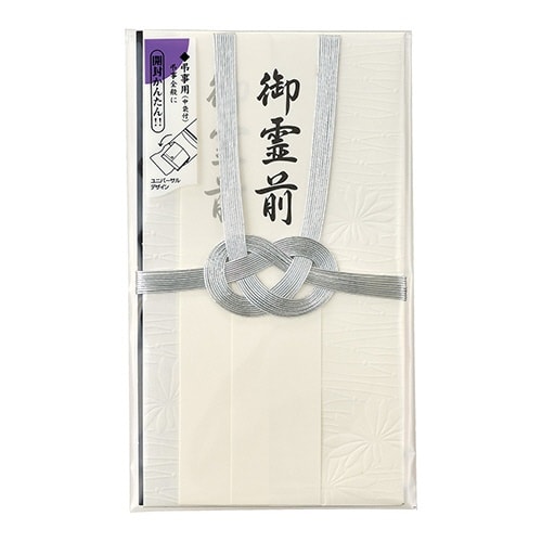 オリジナルのエンボス加工を本体に施した表情豊かな弔事用金封、水引を外さずに簡単に中袋を出し入れできるユニバーサルデザイン、蓮葉のないタイプは宗教問わずご利用可能 |