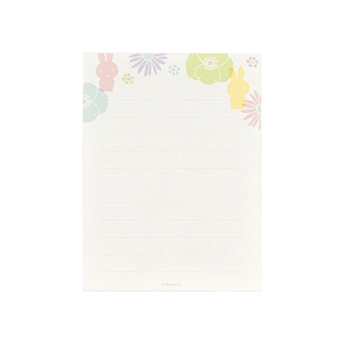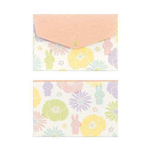 大人かわいいミッフィーのステーショナリーシリーズミニサイズの便箋&封筒セット、さわやかなパステル色の花柄と封筒に施した箔押しエンボス加工のミッフィーがポイント