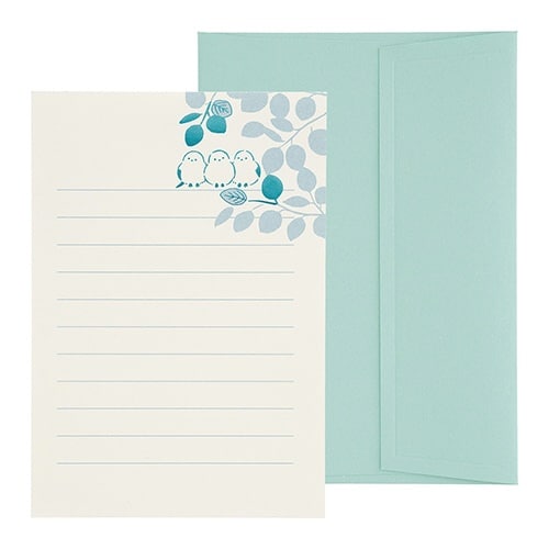 本を読む時間「昼」をイメージしたレターセット、便箋には思いを届ける象徴として鳥(シマエナガ)、書籍用の紙を便箋に使用、Lサイズの写真が入る定形郵便サイズ |