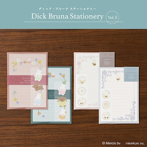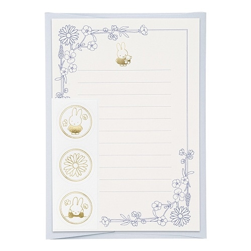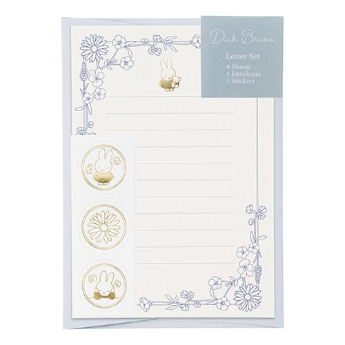 ディック・ブルーナの絵本のキャラクターをあしらったステーショナリーシリーズ、便箋と封緘シールに箔押しが施されたレターセット、セット内容:便箋6枚、封筒3枚、シール3枚入