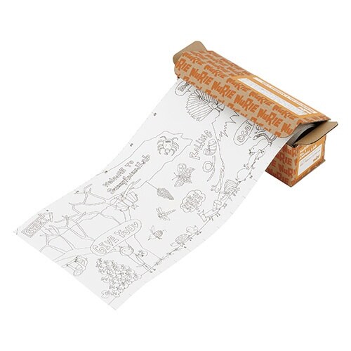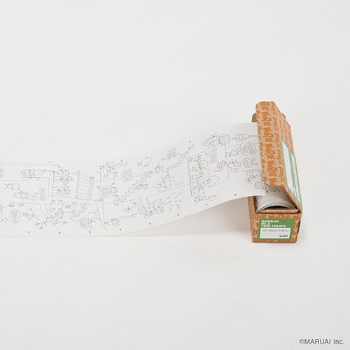 『コンパクトな箱から出てくるNuRIEは、なんと2,280mm!引き出しながらコツコツ塗って、飛び出すストーリーを楽しんだり、床に広げてみんなで仲良く並んで塗ったり、楽しみ方はさまざま |