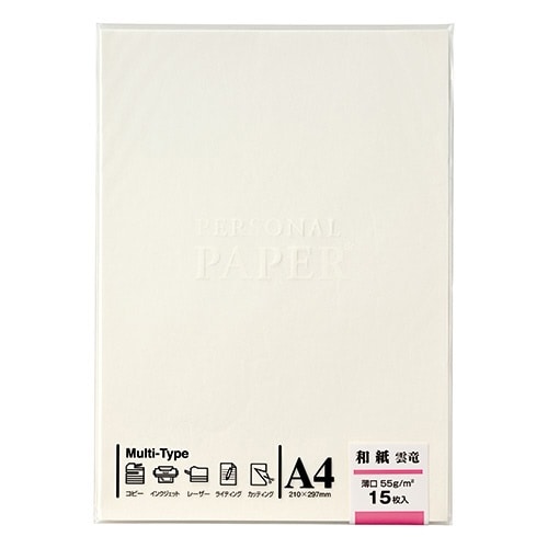 白地の薄紙を使用した繊維の模様が上品な和紙の風合いが楽しめるコピー用紙、あいさつ状、お品書き、POP、手工芸和紙にぴったり、コピー・プリンタ対応 |