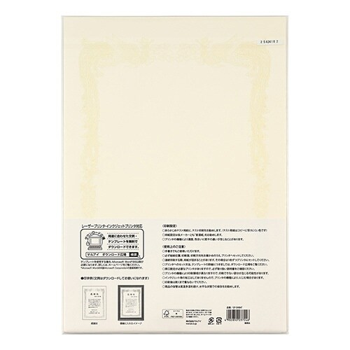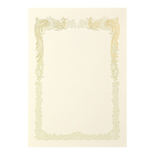 鳳凰柄を金箔と印刷加工でくっきりとデザインした賞状用紙、地球に優しいFSC認証紙を使用縦型横書き用