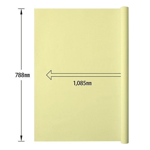 無地の上質紙(レモン色)を使用した模造紙、ポスターや掲示板などあらゆる用途に使用可能、サイズ:788×1,091mm、坪量:90.7g/平方m、2枚巻 |