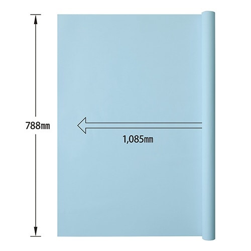 無地の上質紙(空色)を使用した模造紙、ポスターや掲示板などあらゆる用途に使用可能、サイズ:788×1,091mm、坪量:90.7g/平方m、2枚巻 |