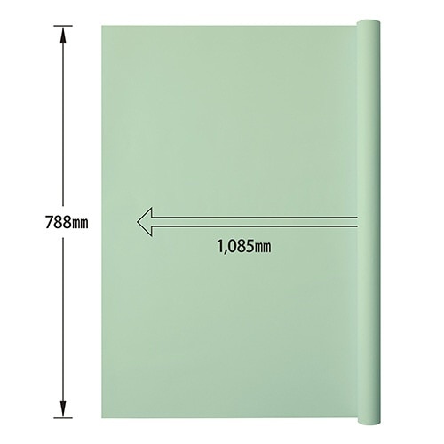 無地の上質紙(若草色)を使用した模造紙、ポスターや掲示板などあらゆる用途に使用可能、サイズ:788×1,091mm、坪量:90.7g/平方m、2枚巻