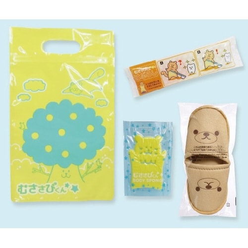 かわいいアニマル柄むささびくんハブラシ1、むささびくんボディスオンジ1、クマスリッパ1、むささびくんチャック付バッグ1 |