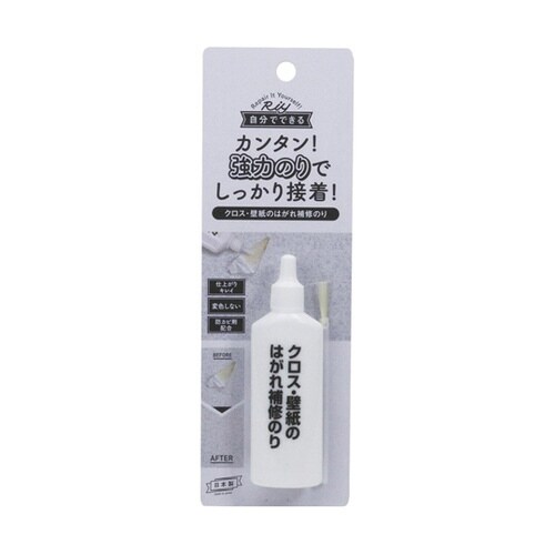 各種壁紙(紙、ビニール系、塩ビ系、布製など)のはがれを直します。施工後は、変色・テカリがありません。抜群の速乾性で手早くきれいに仕上がります。先端ノズルタイプで細部にもピンポイントで補修できます。 |