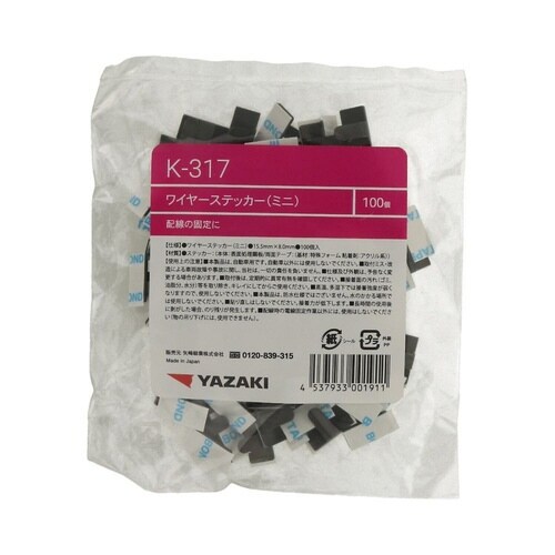 材質は本体が鉄で強靱性に優れる。接着剤はポリエチレンフォームで、アクリル系粘着材。Y606・Y607・Y608は、ステンレス製で防錆性に優れている。配線コードの固定、小物掛けなどに使用。 |