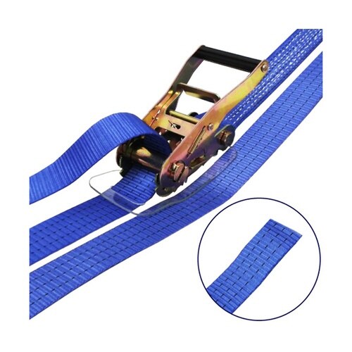 ラチェットバックル式ラウンドタイプのラッシングベルト、握り易いバックルと柔軟強度な繊維ベルトで荷に優しく簡単安全に荷締め作業ができます。
