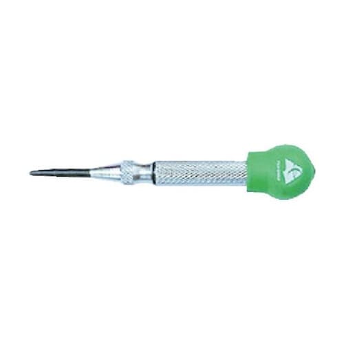 連続使用が可能です。キャップは持ちやすいエラストマゴムを使用しています。ハンマー不要、頭部を押さえるだけで正確な目打ちができます。片手で打ちこめるので、真上の作業も簡単です。 |