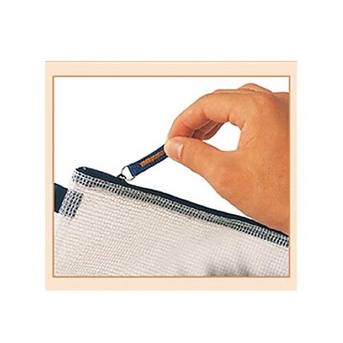 糸で補強されたメッシュ生地で耐久性に優れます。内容物が判別しやすい透明仕様。 |