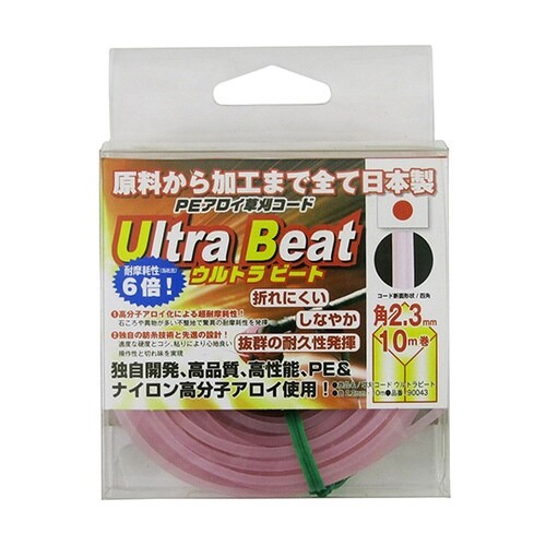 折れにくい、しなやか、抜群の耐久性の草刈用ナイロンコードです。原料から加工まですべて日本製です。独自開発、高品質、高性能、PE&ナイロン高分子アロイ使用。石ころや異物が多い不整地で驚異の耐耗性を発揮。 |