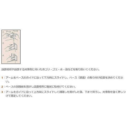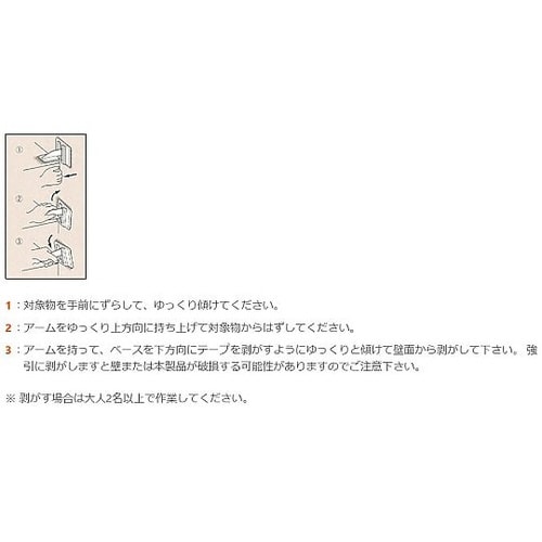 震度7相当にも耐える。新開発の垂直な壁面にも貼付け可能な保持力を持つ強粘着ジェルを採用。かつ色移りもしにくいスチレン系樹脂製。機構部品は壁面と対象物を簡単かつ強固に貼付け可能な2分割構造。 |