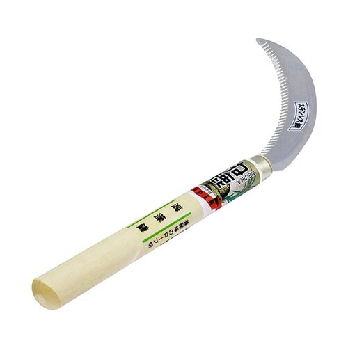 わかめ、海藻など海産物の収穫や養殖場のロープ切に。刃は大きなピッチのダブル刃なので、刃に海草のかかりが良く切れ味も良好なのでスムーズに収穫ができます。海草取り鎌。刃部はステンレス鋼を使用。 |