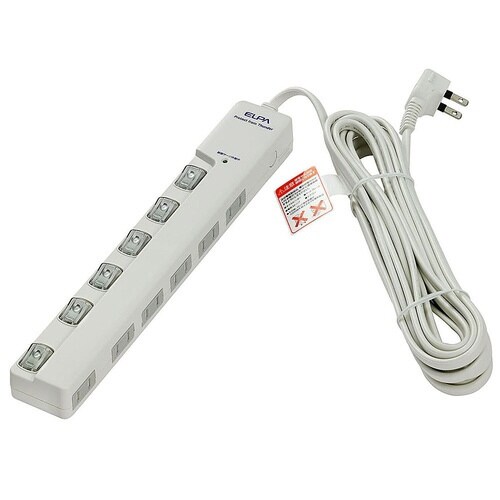 LEDランプスイッチ付タップ ヨコ 5m 6個口 WLS−LY650MB(W)