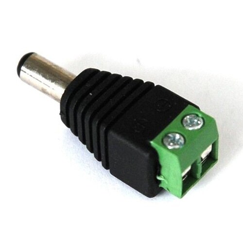 外径5.5mm 内径2.5mmのDCプラグです。ケーブルはネジ留めの端子台式です。+と−がマーキングされています(センタープラスとしてお使いください)。 |